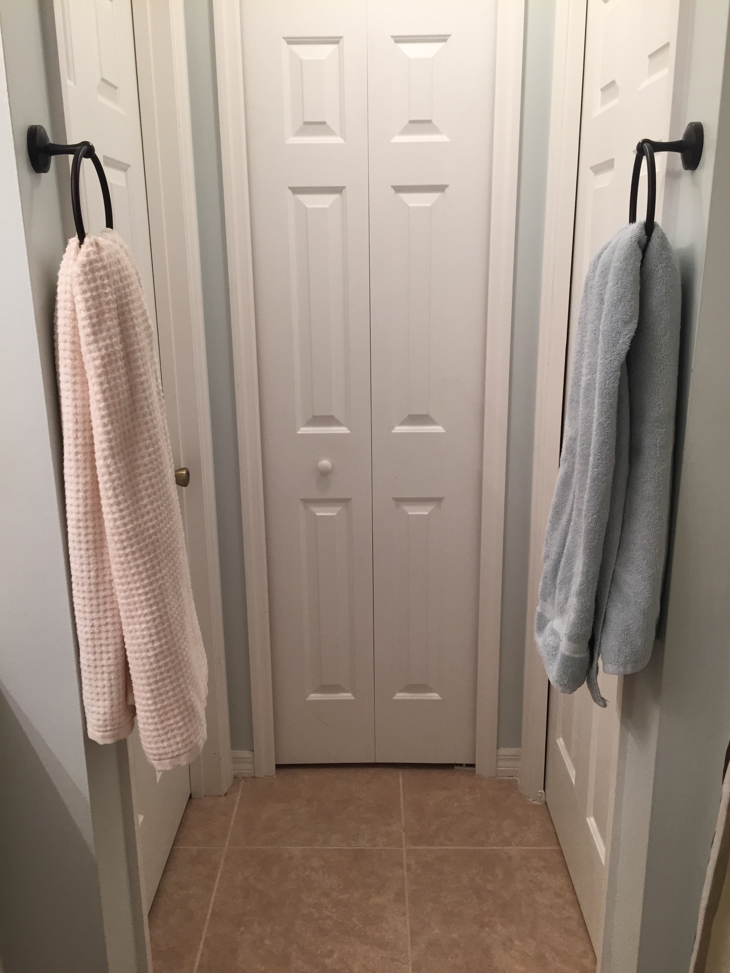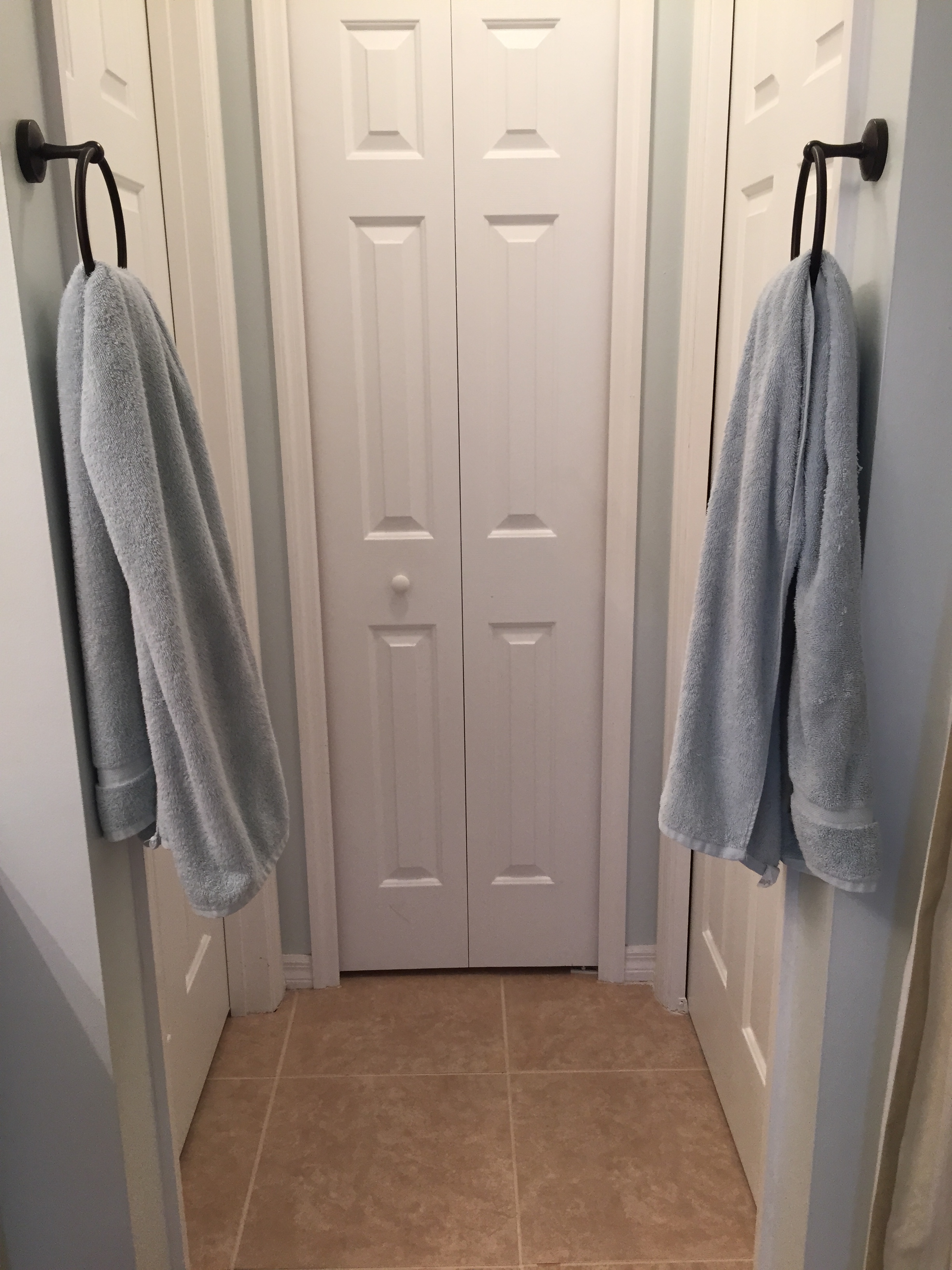 We try to match our towels, and since there isn’t a set “rotate” day, one of us usually switches them when it’s time. This rings true UNLESS said spouse is unhappy with the other. In these unfortunate situations, Helpmate A will change their towel whist leaving Helpmate B to revel in their mismatched shame a while longer. Decor aside, trust me when I say that you don’t want different colored towels.